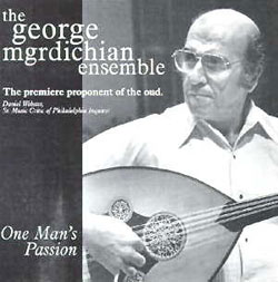 George Mgrdichian, Armenian oud virtuoso is best known for his decades of classical and Middle Eastern performances which ranged from nightclubs to Carnegie Hall. Created initially for a wealthy Arab sheik who heard George perform at a New York City concert several years ago, the sheik enjoyed George’s sound so much that he commissioned him to make an album of ancient Arabic folklore songs with a heavy jazz influence. Unfortunately, the sheik never heard the music as he died enroute to see George. Thus this recording was released a few years after his death. The musicians on this recording also include Nick Mandoukos (guitar, 12-string guitar); Mohamed El Akkad (kanun); Souren Baronian (soprano saxophone); Hanna Mirhige (deff, tambourine).